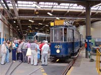 GVB organiseerde op zondag 3 juni EEN Open Dag in Haar tramremise Aan de Havenstraat . Relaties van GVB Konden Ervaren Wat Achter de schermen ER gebeurd OM de 222 trams Rijdende te houden . De bezoekers getrakteerd op Werden OOK bedrijfshistorie deur Het Tonen van EEN film en de in 1929 gebouwde 'Blauwe Wagens " 401 +916 . | |