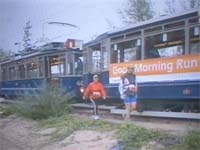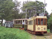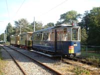 De personeelsvereniging van Arriva uit Groningen bracht 17 oktober een bezoek aan de Museumtramlijn. Onder de bezoekers waren ook de restaurateurs van de Groningse 41. Zij hebben de Haagse tram in 1980 omgetoverd tot een waardige replica van de Groningse stadstram. Het gezelschap reisde na-tuurlijk met hun eigen tram die voor de gelegenheid de NBM 43 en GVB 916 trok. Niet eerder waren drie verschillende steden te zien in één tramstel. |