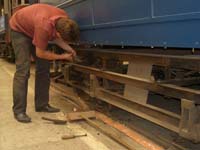 De restauratieploeg is onlangs begonnen de restauratie van bijwagen 754 van de Amsterdamse Gemeentetram verder aan te pakken. Het grove werk was al gedaan en men kan zich nu richten op het meer opbouwende werk. Ondanks dat deze wagen al goed op weg was zijn er toch nog wel een paar flinke klussen te doen. Met zes man wordt het aanhangrijtuig uit 1916 teruggebracht in een historisch verantwoorde toestand. |