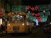 De Winterse tramritten werden nóg drukker bezocht dan in de voorgaande jaren, en daarom werden dit jaar ook het aantal ritten uitgebreid. Ondanks dat we per dag twee tot vier ritten uitvoerden op 17, 23, 24 en 31 december, moesten we helaas een aantal liefhebbers teleurstellen. De deelnemers werden door de Kerstman getracteerd op warme dranken en oliebollen. | ![]() F: Onbekend |